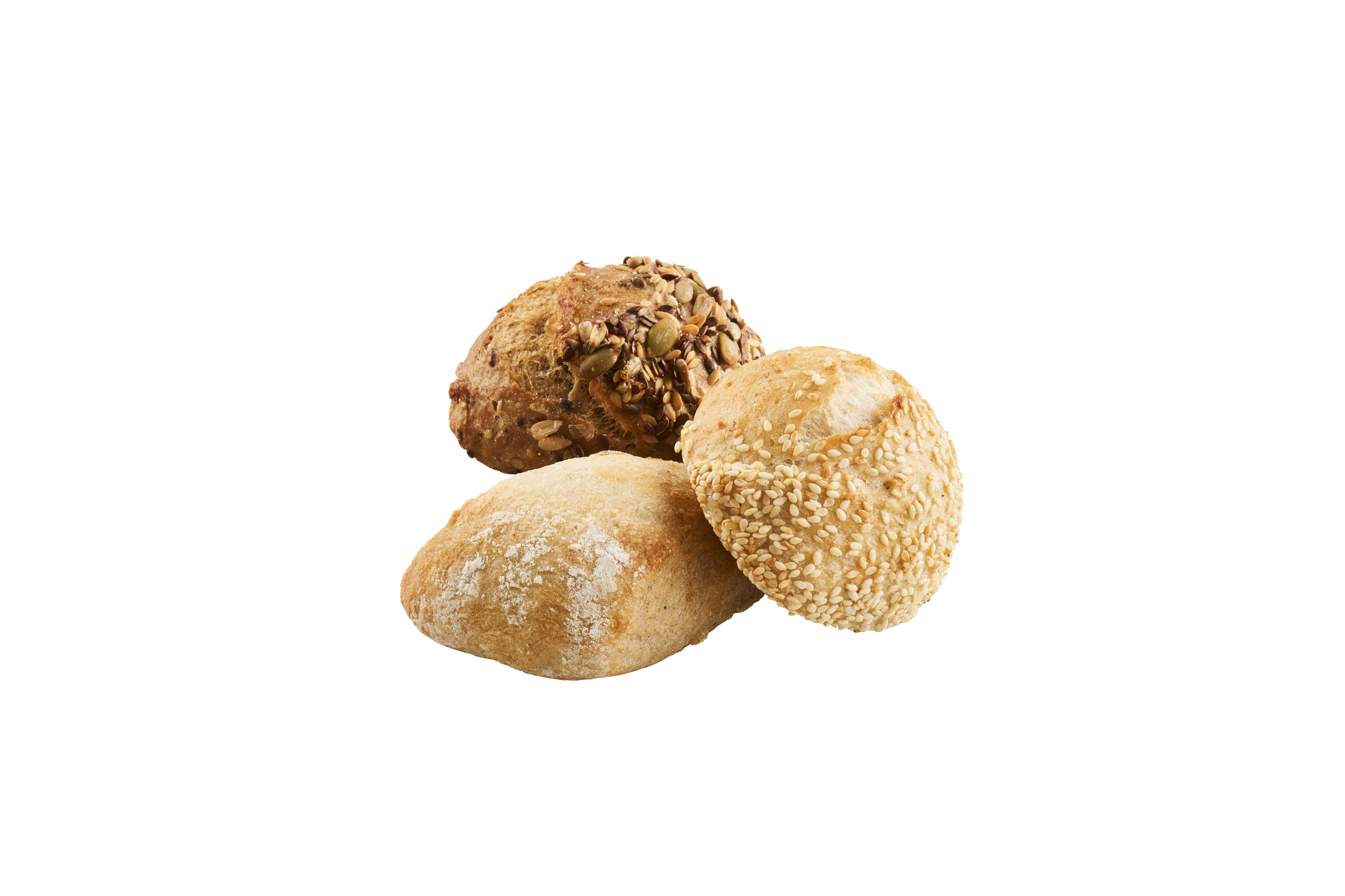 Mix af koldt- og langtidshævede (18 timer) surdejs brunchstykker. Indeholder: Surdejs brunchstykke øland, Surdejs brunchstykke kerner og Surdejs brunchstykke sesam.